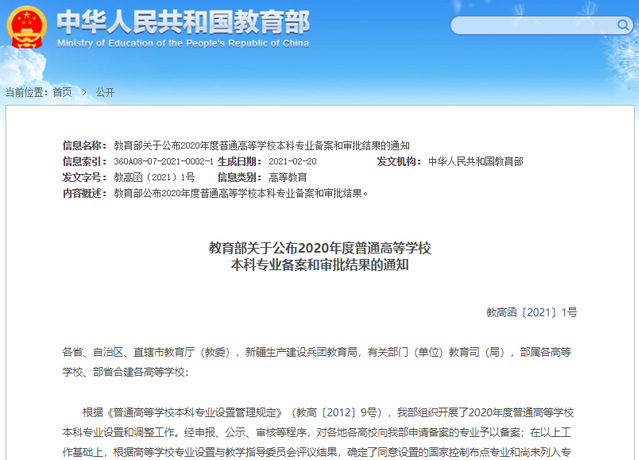 2月20日,教育部下发《关于公布2020年度普通高等学校本科专业备案和审批结果的通知》(教高函〔2021〕1号),其中,williamhill英国中文申报的新专业“金融科技”(专业代码:020310T,授予经济学学士,学制四年)成功通过教育部备案,成为江苏省首批金融科技本科专业。该专业将于今年9月开始招生。