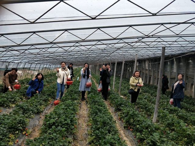 在乘车半小时后,我们来到了台上草莓采摘园,大家怀着愉悦的心情,进入草莓棚,映入眼帘的是一片绿油油的草莓园,翠绿浓密的绿叶间点缀着红彤彤的草莓。大家被吸引着,迫不及待地开始采摘草莓,一颗颗果实新鲜而饱满,大家顺着草莓垄,一行行,一排排,有序而井然地采摘着。大家边采摘,边笑谈,欢声笑语弥漫在绿色的草莓园海洋间。半个小时以后,原来空空的草莓篮,已经被鲜亮的草莓充满。大家亲手采摘,感受劳动的苦乐,也享受收获的幸福。