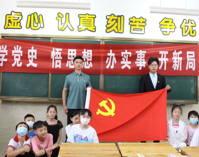 为庆祝中国共产党成立100周年,积极响应习近平总书记在党史学习教育动员大会上的号召,6月2日下午williamhill英国中文新时代青年讲师团走进美丽的徐州市段庄第一小学宣讲党史,号召小学生学党史,知党恩,跟党走,努力学习,用更加优异的成绩奋力谱写伟大祖国第二个百年奋斗目标新篇章。