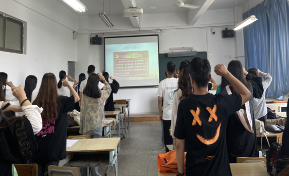 最后,由毕业生党员代表周之茹带领全体毕业生党员重温入党誓词,进行了庄严宣誓。大家纷纷表示,将来不论身处何方、身兼何职,都会时刻明确党员身份,严格要求自己,履行党员义务,同时也表达了对学校的敬意、感谢与不舍。在校歌的悠扬歌声中,活动圆满结束。