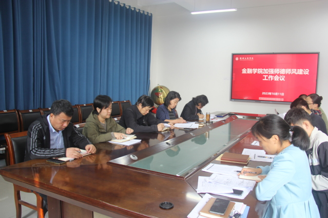 为保障把教师思想政治建设放在首位,提升教师师德师风综合素养,2023年10月11日上午,我院召开了加强师德师风建设工作会议。学院领导班子全体成员、各科室负责人参加了会议。院长董金玲主持会议。