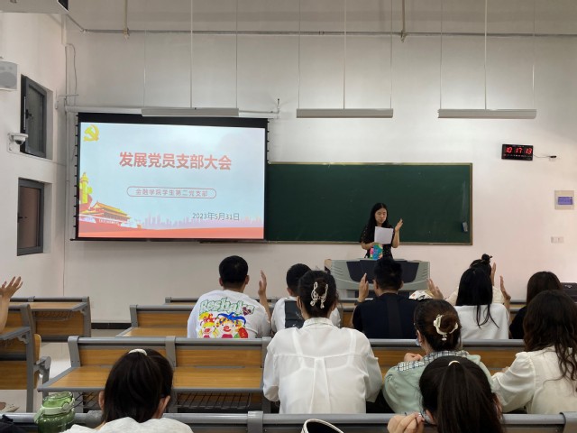支部大会首先由各支部书记宣布会议议程。20名发展对象依次上台宣读入党志愿书,向大会汇报对党的认识及发展过程、入党动机、本人履历及现实表现等情况,均表达了对党的向往,对党的忠诚,表示坚定不移跟党走,为共产主义事业奋斗终身的决心。接着,正式党员对他们进行书面票决,一致同意全体发展对象接收为中共预备党员。最后,党员代表带领全体党员对党旗宣誓,表明入党决心。