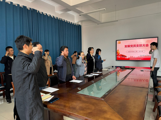 新发展预备党员向党支部郑重表态:坚定共产主义理想信念,以党员先锋模范为榜样要求自己,切实做好本职工作。支部书记提出希望和要求,要坚持用自身的实践行动为党奉献,体现“一名党员一面旗帜,一枚党徽一生承诺”,争取如期转正成为一名正式党员。