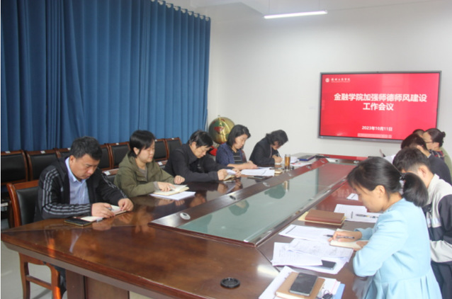 为保障把教师思想政治建设放在首位,提升教师师德师风综合素养,2023年10月11日上午,我院召开了加强师德师风建设工作会议。学院领导班子全体成员、各科室负责人参加了会议。院长董金玲主持会议。