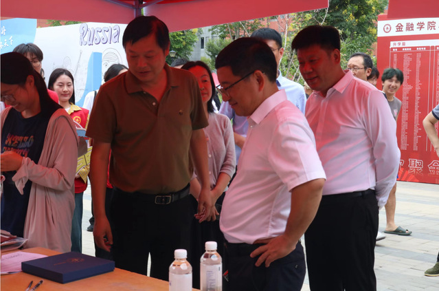着力走访迎新,亲切交流显“贴心”。9月7日晚,学院领导带新生辅导员分组深入走访2024级新生宿舍,与他们亲切交流,增进学生对学院、班级的熟悉程度。领导老师们不厌其烦的叮嘱同学们要树立安全意识,防范电信诈骗,过好集体生活,要立足专业,厚植金融情怀,练就过硬本领。
