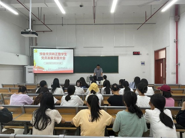 支部大会首先由各支部书记宣布大会议程,随后考察期满的20名预备党员进行转正答辩,从学习、思想、工作等方面向党组织汇报自己一年来的表现,并对答辩小组的提问进行了认真回答。支部正式党员对各预备党员转正进行书面票决,一致同意考察期满的预备党员如期转正。随后,17名发展对象依次上台宣读入党志愿书,向大会汇报对党的认识及发展过程、入党动机、本人履历及现实表现等情况,均表达了对党的向往,对党的忠诚,表示坚定不移跟党走,为共产主义事业奋斗终身的决心。接着,正式党员对他们进行书面票决,一致同意全体发展对象接收为中共预备党员。最后,党员代表带领全体党员对党旗宣誓,表明入党决心。